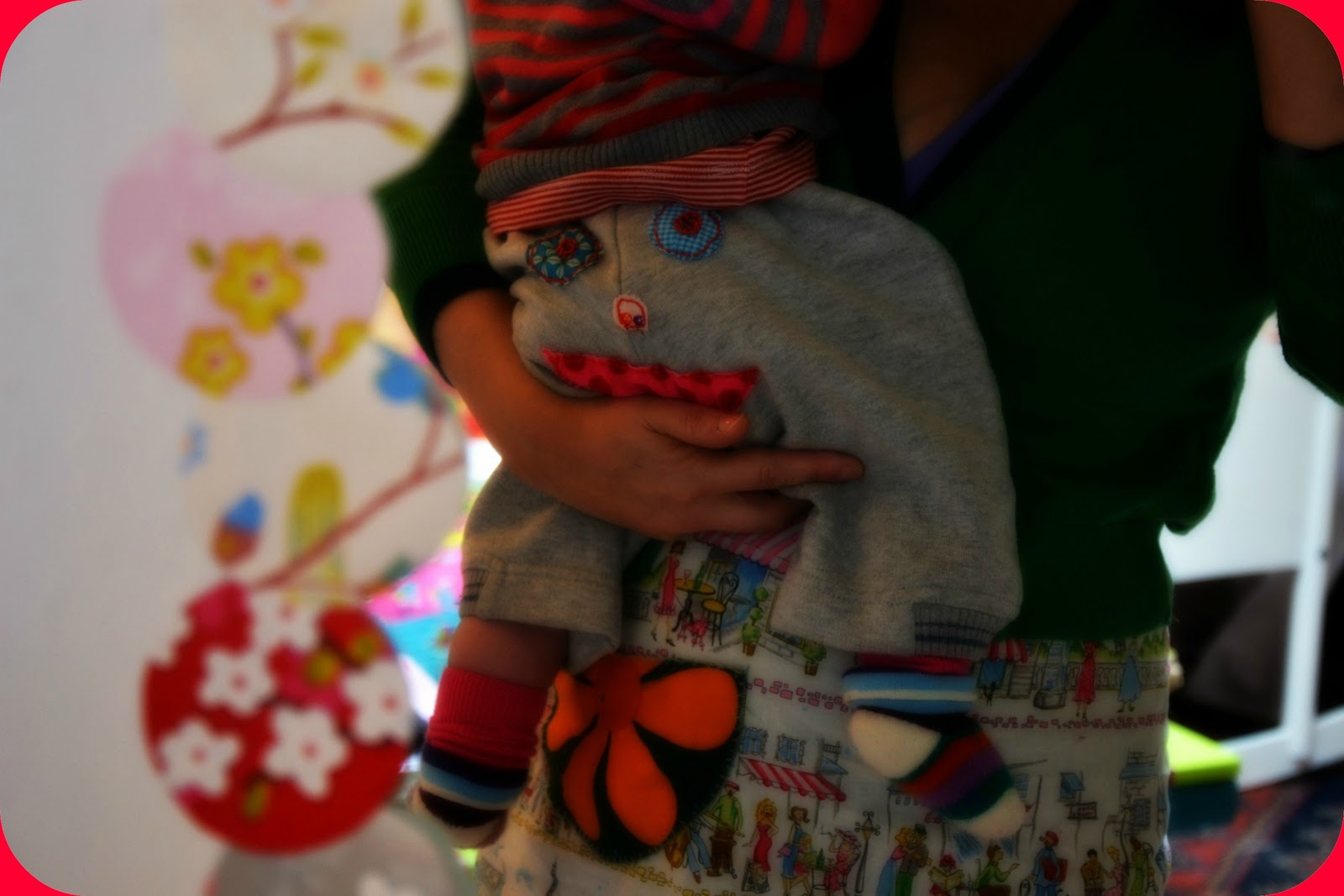 Soluzione di Patamà….continuare a tenerla in braccio, ma dare un senso alla cosa, decorandole spiritosamente il lato B, perennemente in mostra!