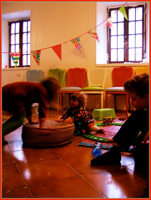 Gaia bellissima la armonia delle sedie colorate!!!!!!!!!!!!!!! comò e bimbi meraviglia pura.Mayda