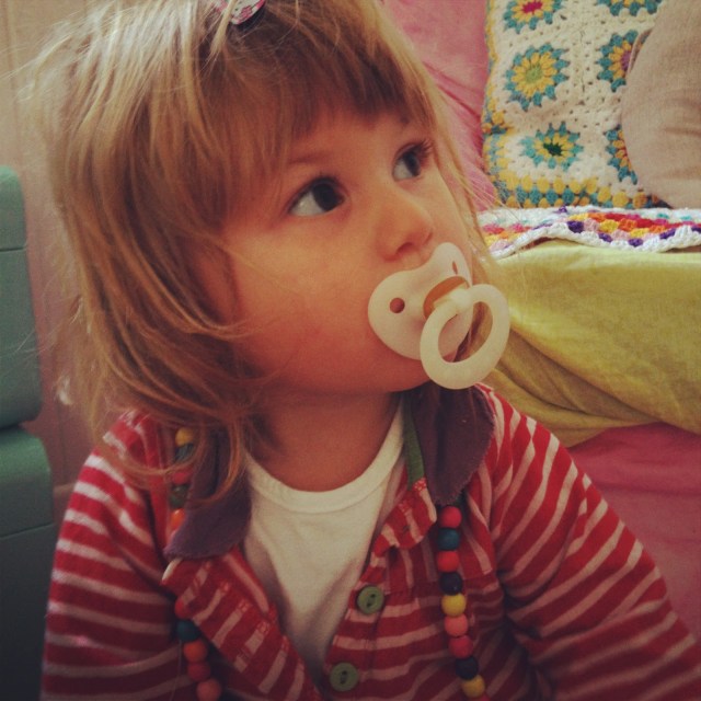 A settembre quando ha ricominciato, tornata a casa il primo giorno si è fiondata sul suo cesto dei giochi, si è tirata fuori un ciuccio che giaceva lì solo e abbandonato e se lo è risolutamente cacciato in bocca.