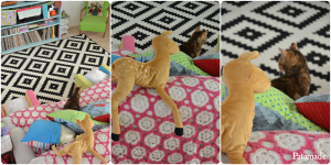 Certo, le tende bianco e nere sono rimaste ben poco, ma almeno ci ho provato. Non è colpa mia, è che sono state subdolamente attaccate da pennarelli e pezzi di stoffa mentre ero distratta.