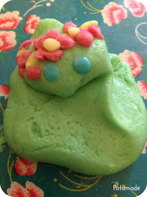 Io, assolutamente in maniera non spontanea, ho dato vita a Barbalalla. Non avevo finito di metterle i fiori tra i capelli (capelli?) che peggio di un soufflè, si è sgonfiata, trasformandosi in una sorta di bignè verde.