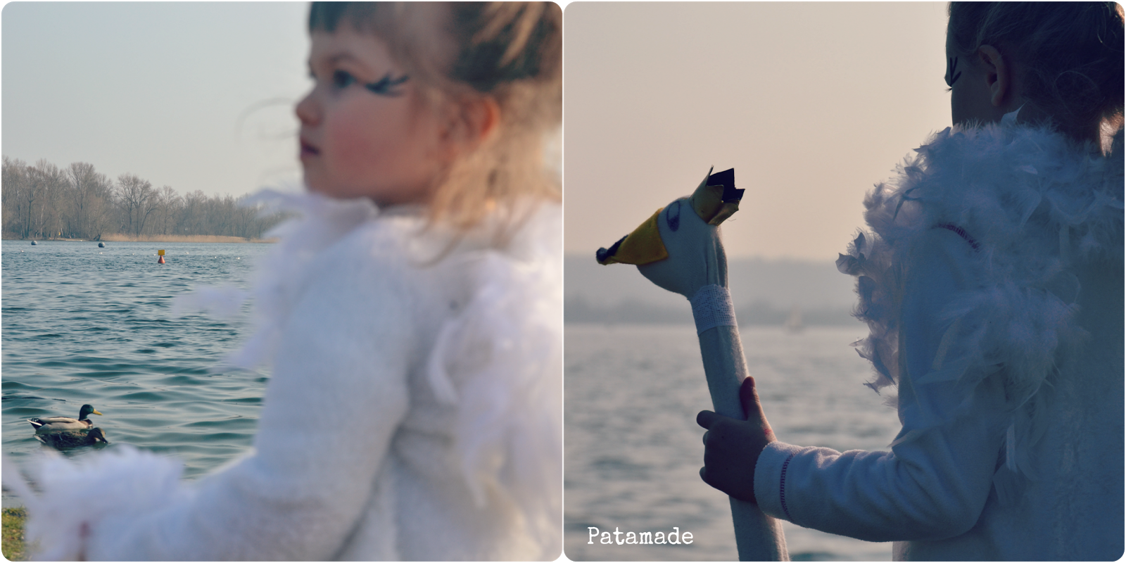 E così mi si è avvinghiata addosso e ha sussurrato come un mantra “casa” “casa”. Visto che non c’era Patapà mi sembrava ingiusto portar via anche i grandi e così ci siamo defilate un po’ e lei, pur rimanendo imbronciata, si è calmata un pochino. E io ho potuto anche fotografare il cigno in riva al lago, perché da madre degenere ma blogger, un pensiero al post mi è anche scappato pur nella situazione difficile.