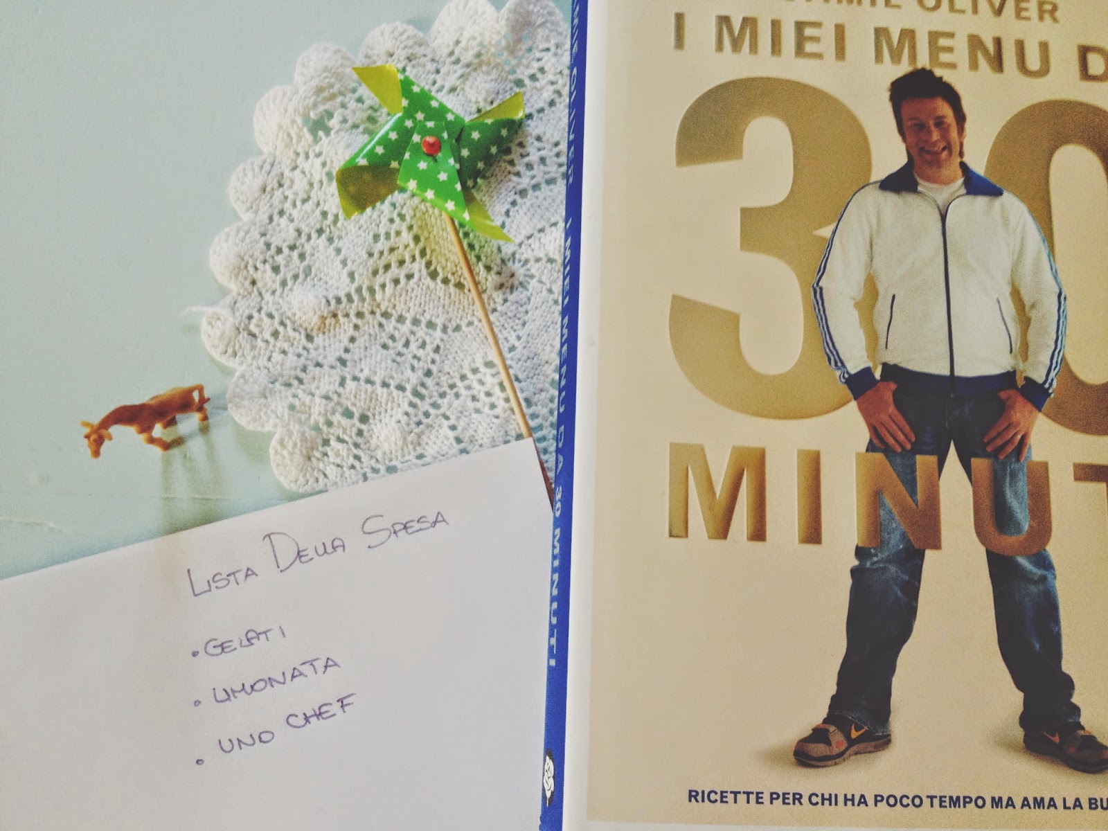 Allora mi sono portata dietro i menù da 30 minuti di Jamie Oliver, immaginando che lui non sarebbe mai venuto avendone probabilmente abbastanza dei figli suoi.