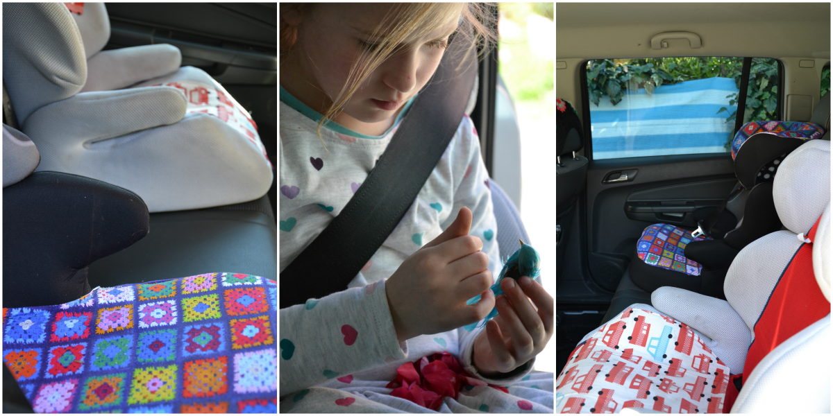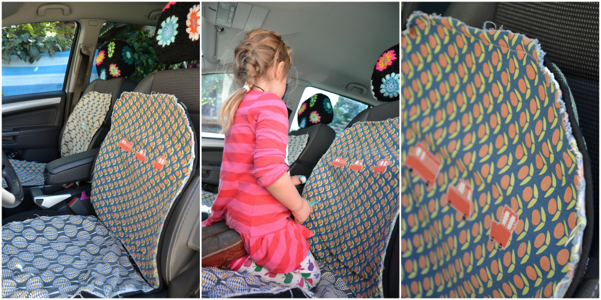 E così mi adatto come posso, facendo conto sulle mie scarsissime capacità sartoriali. Ma ho scoperto che se prendi dei coprisedili di quelli un po’ rigidi da appoggiare solo sopra, puoi cucirci della stoffa carina.